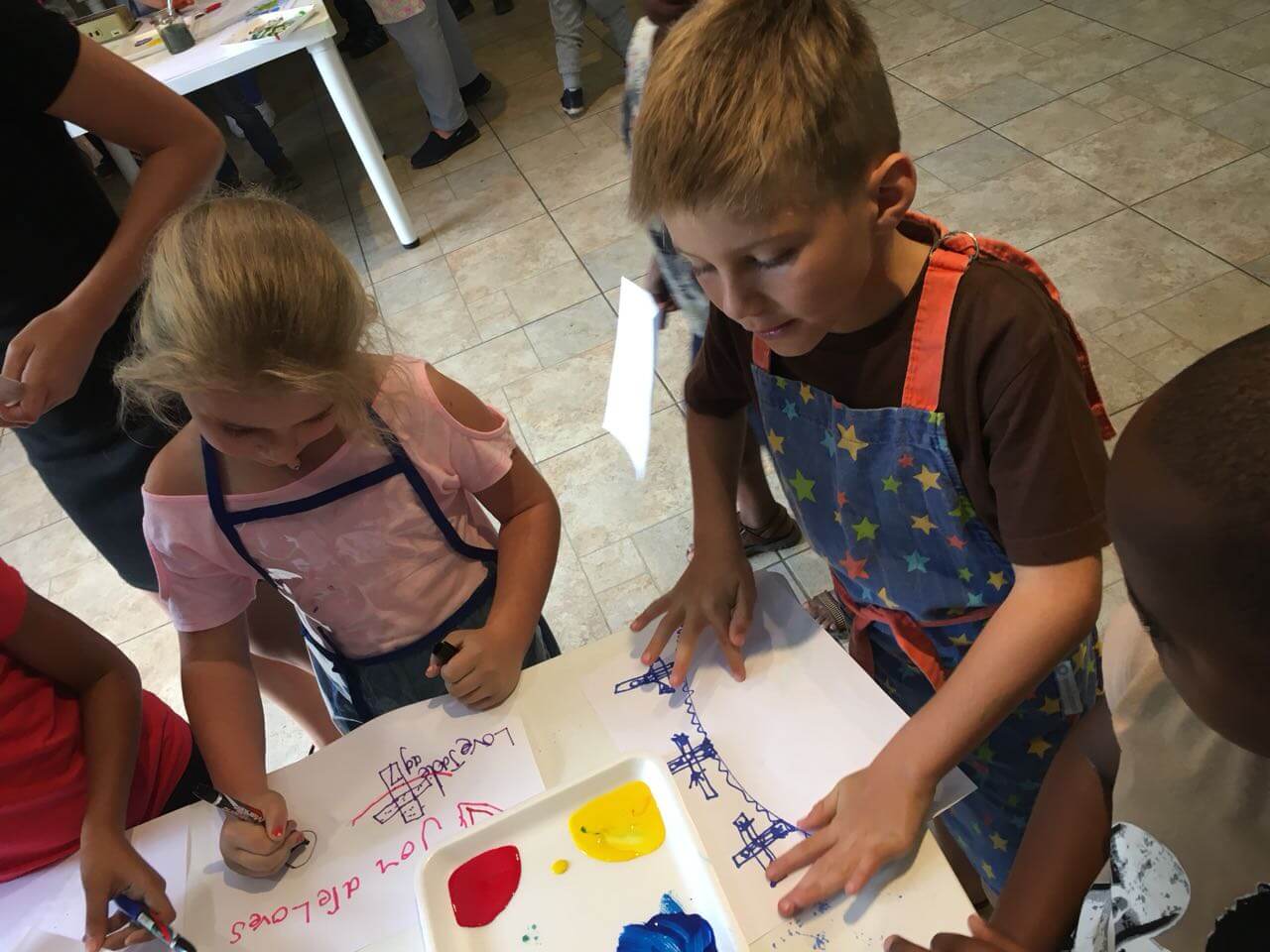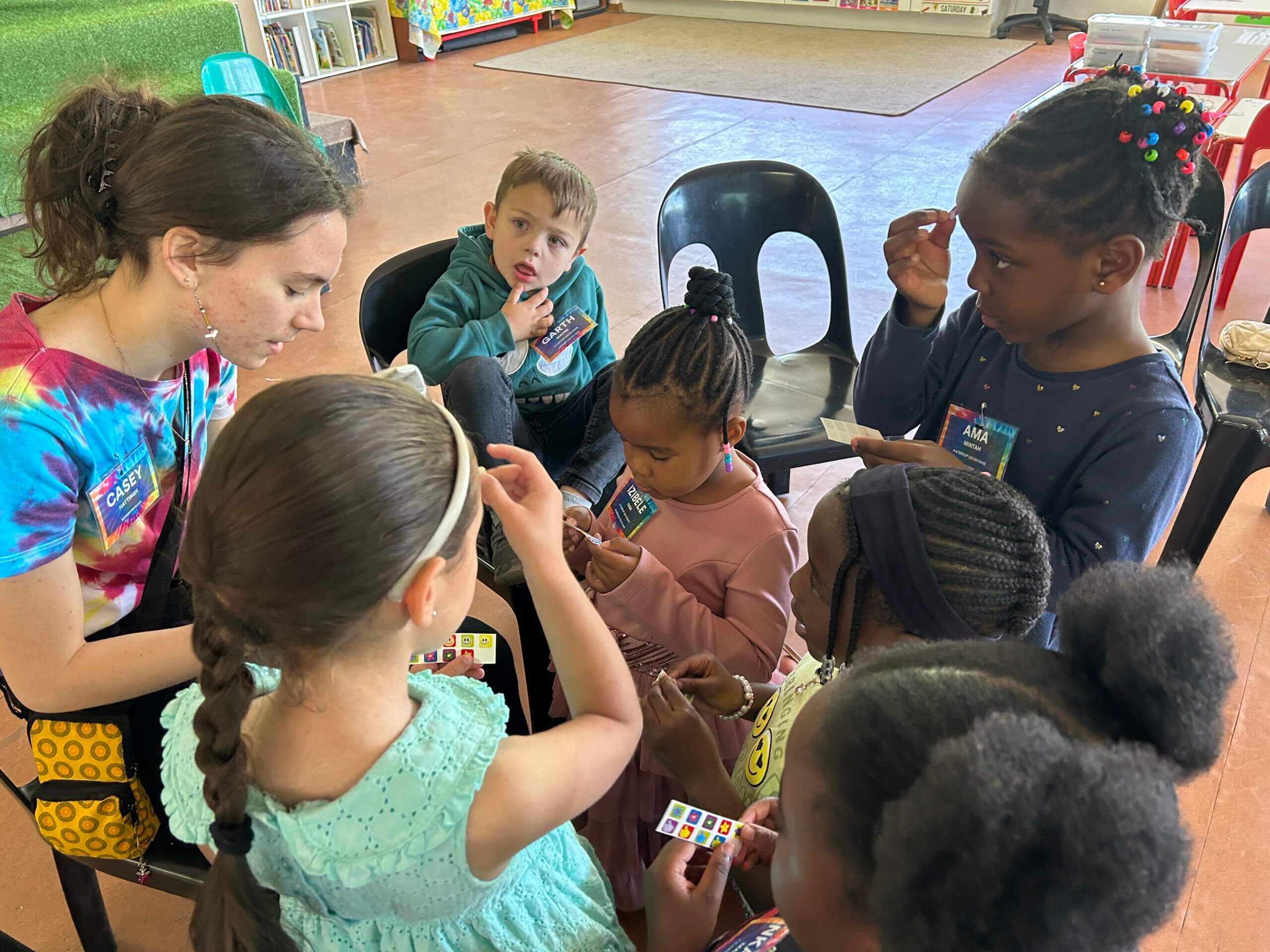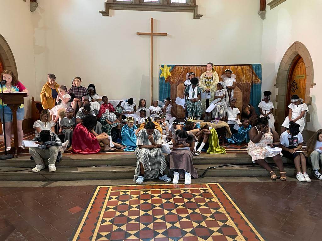 After a fun and engaging lesson, the leaders take the kids back up to St. Saviour’s to meet their parents and enjoy juice and biscuits.